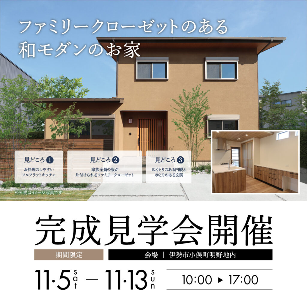 「ファミリークローゼットのある和モダンのお家」完成見学会