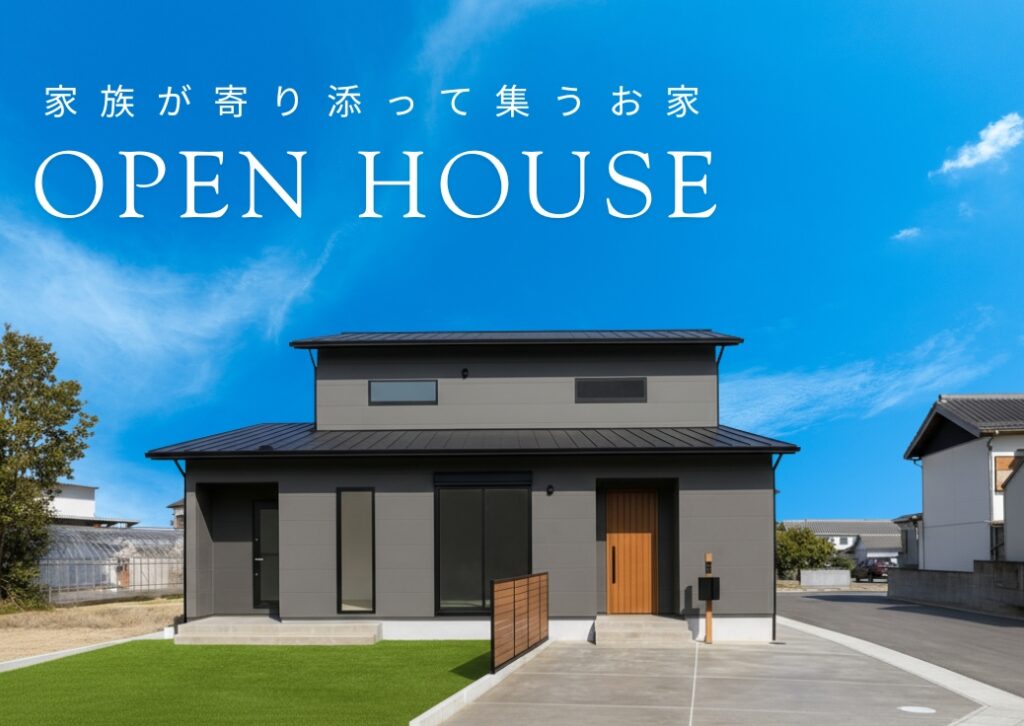 グレーの外壁に黒のサッシを合わせた、落ち着いた印象の外観。木目の玄関ドアがやさしいアクセントになっています。