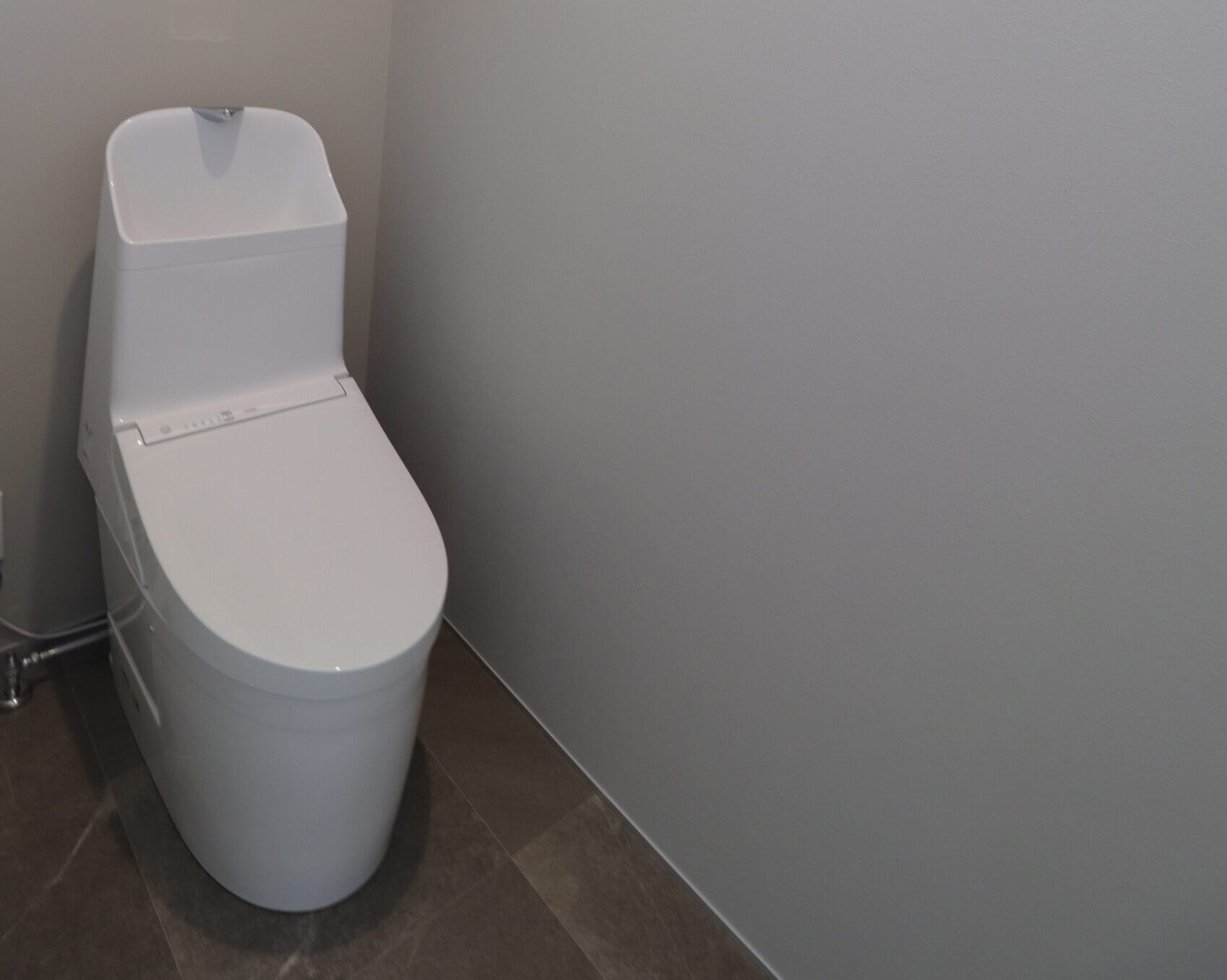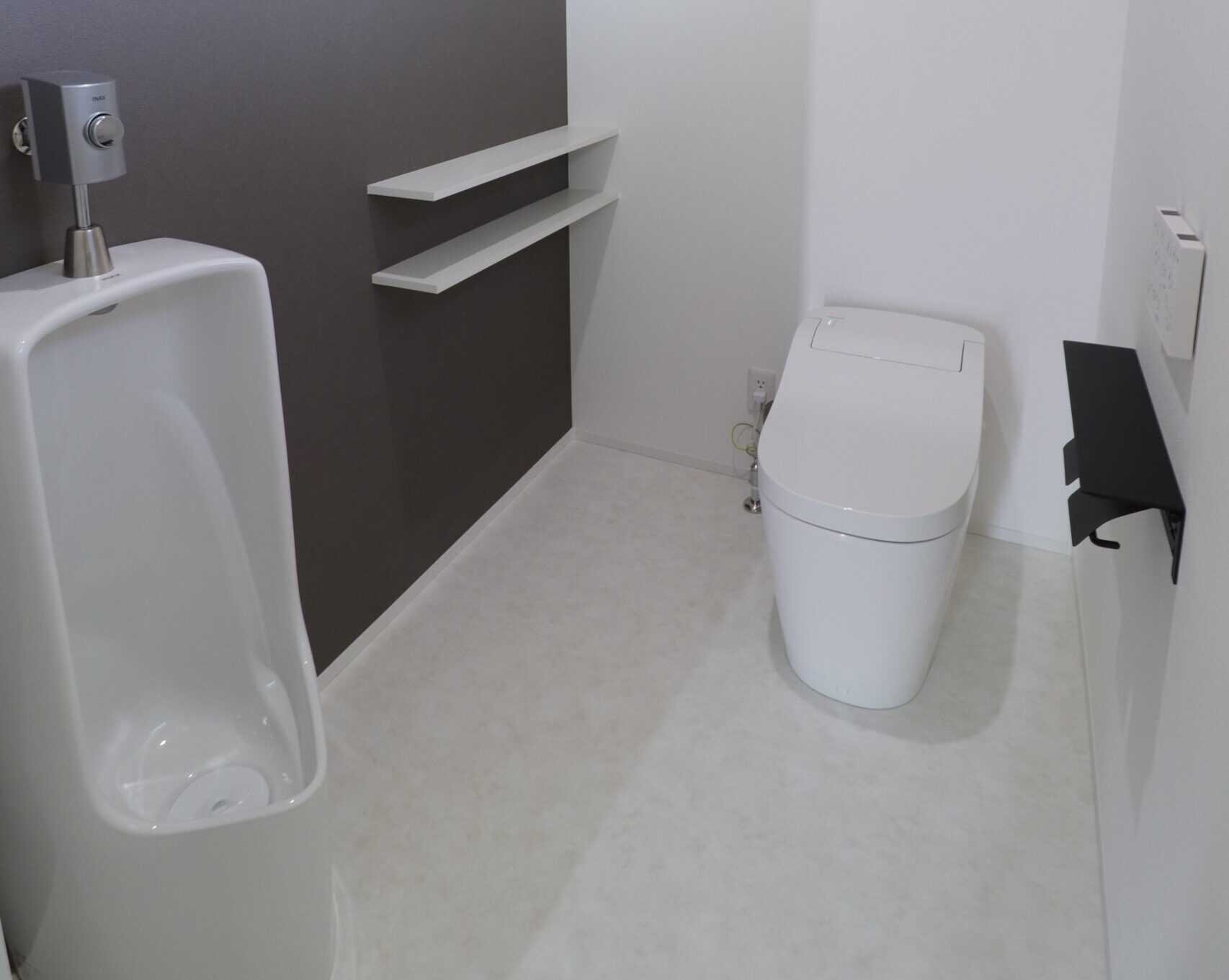 来客用や家に帰ってきてすぐ使えるよう玄関側に1つ、来客者がいる場合や夜トイレに行きたくなっても寒くないよう寝室側に1つ設置しました。 トイレが2つあるので、朝の忙しい時間帯も混雑しません。