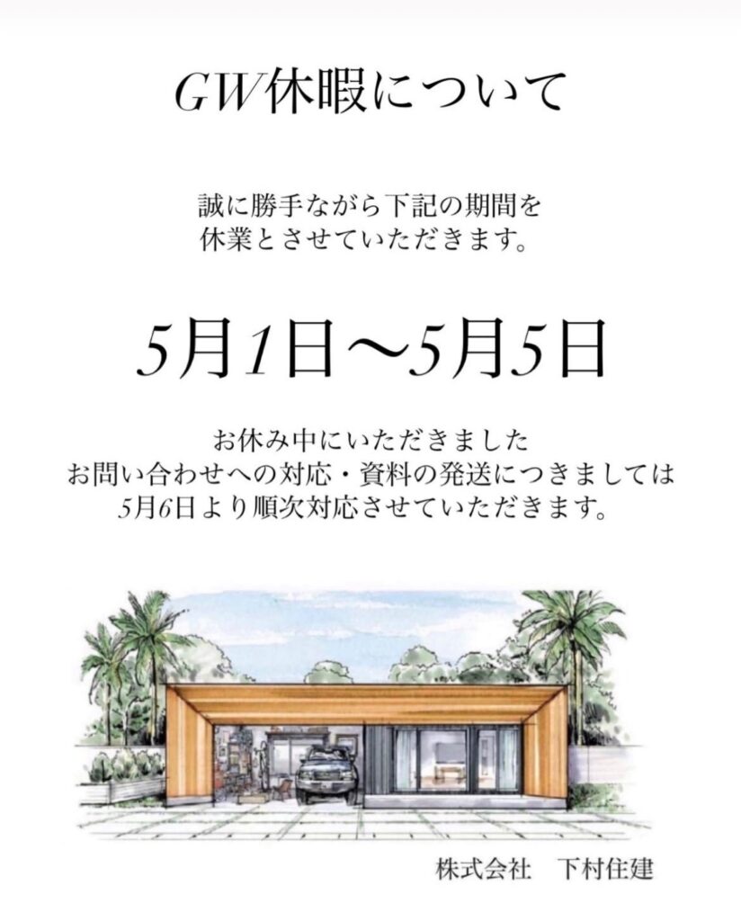 さて、明日5月1日(日)~5日(木)までの間GW休暇となります。