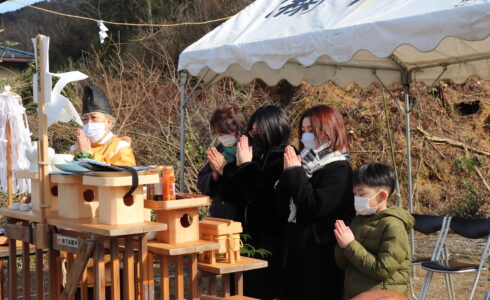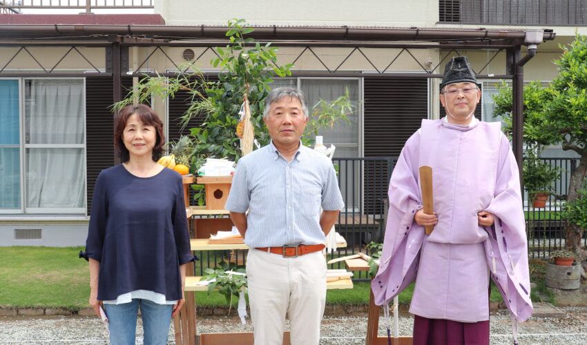 梅雨時期で天気が心配でしたが雨も降らず、無事地鎮祭を執り行うことができました。
