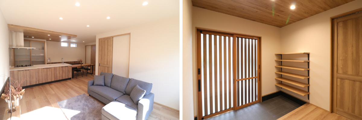 玄関の扉を引違い戸にすることで、さらに「和」の雰囲気を楽しむことができます。