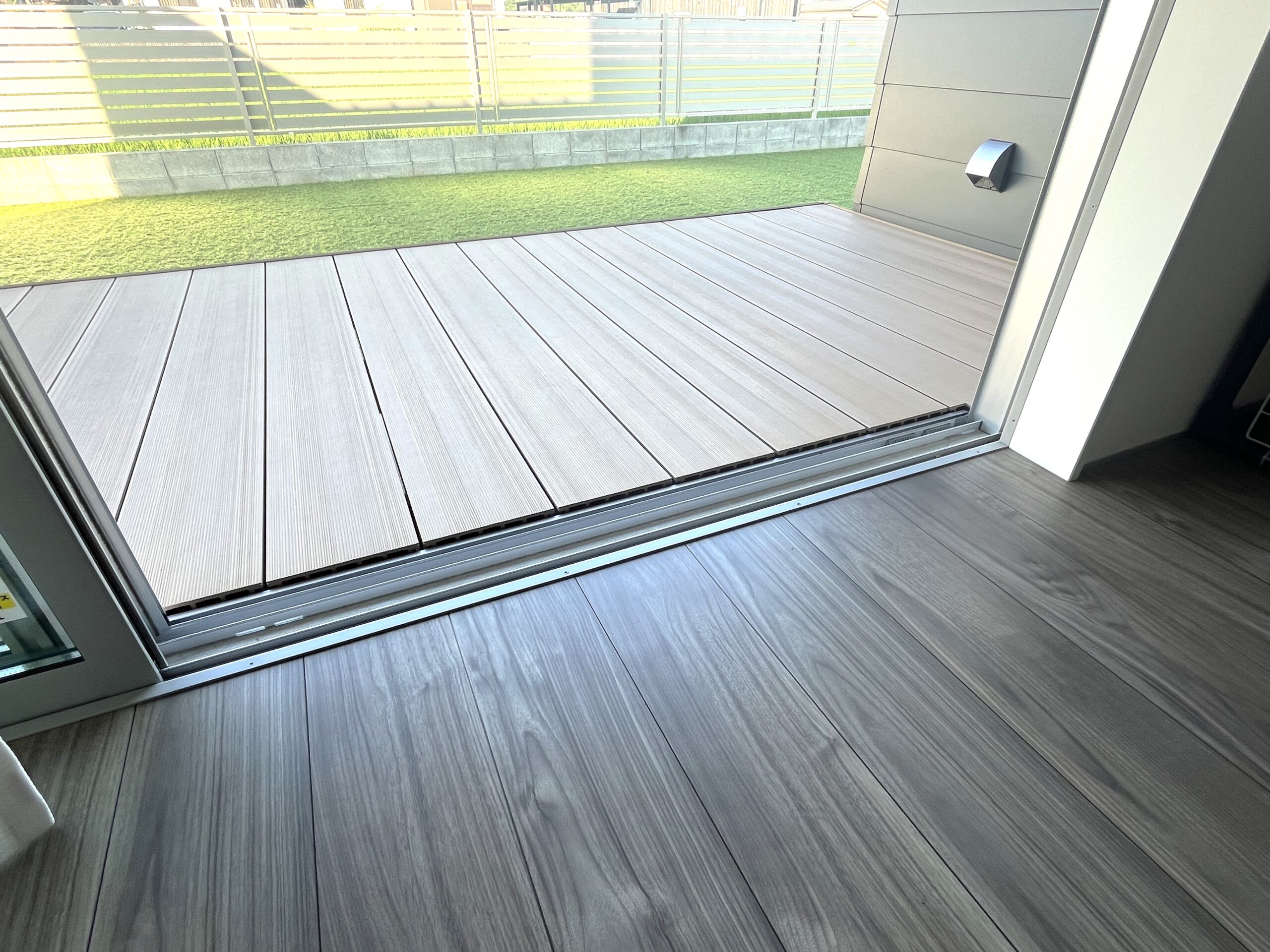 リビングとウッドデッキをフラットに繋げることで、視線が外に抜け、面積以上の広がりが感じられます。